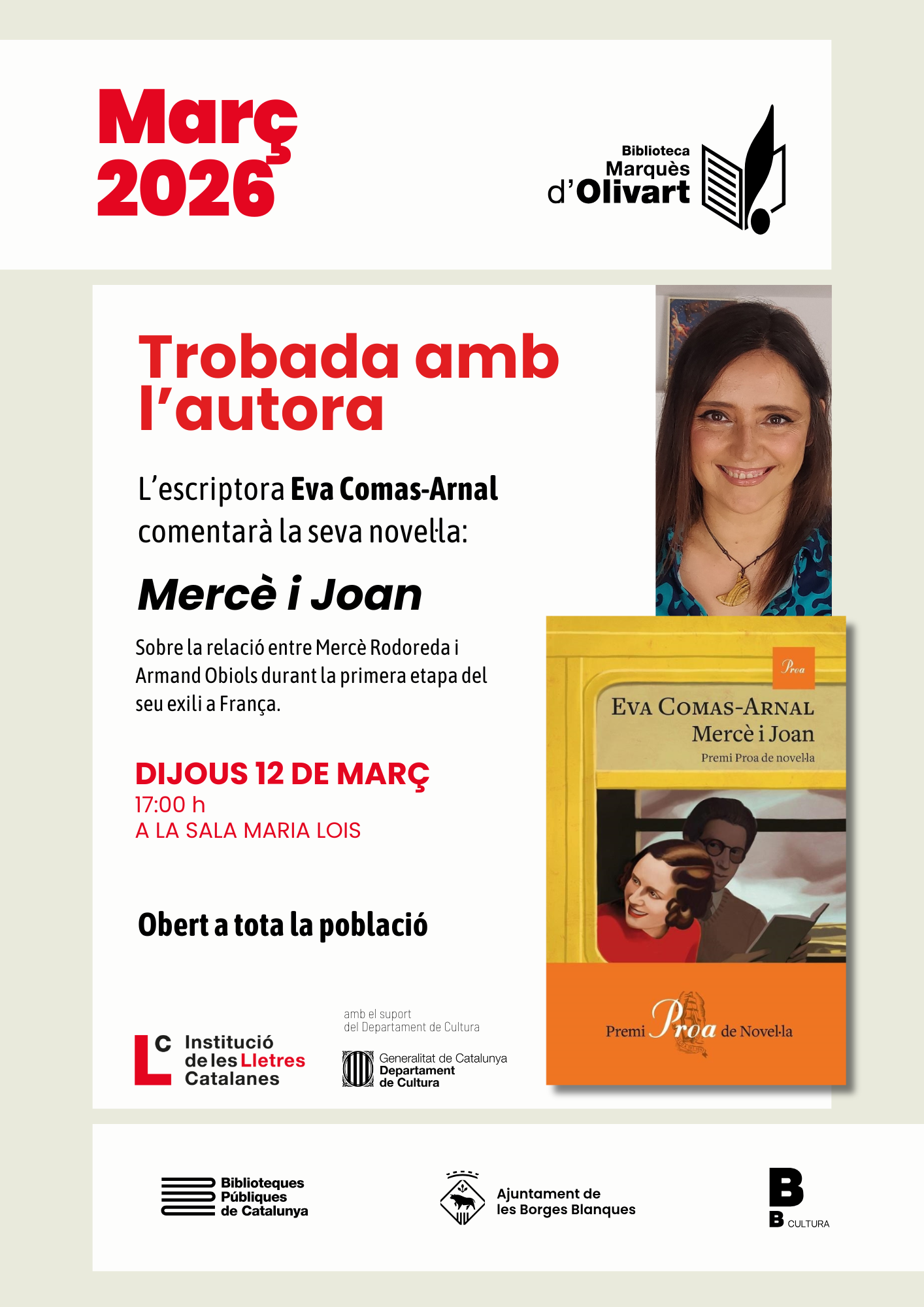 Trobada amb l’autora: l’escriptora Eva Comas-Arnal comentarà la seva novel·la “Mercè i Joan”