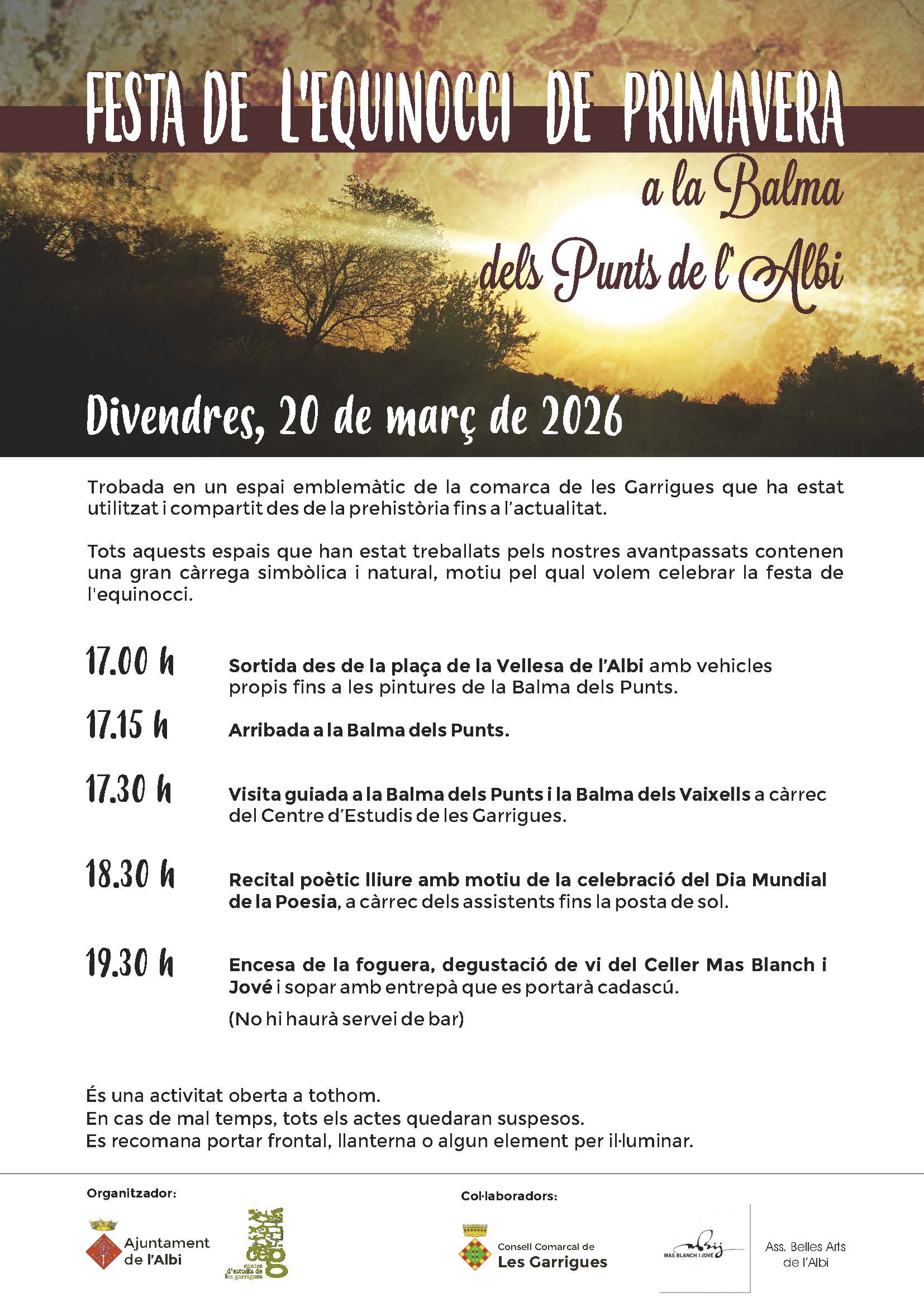 Sortida des de la plaça de la Vellesa amb vehicles propis fins a les pintures de la balma dels Punts a les 17 h